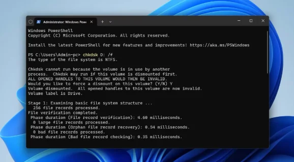 3. Now, in the {CMD} command prompt window, type “chkdsk X: /f”. Press the Enter key. Remember to enter the letter associated with your USB drive instead of “X”.